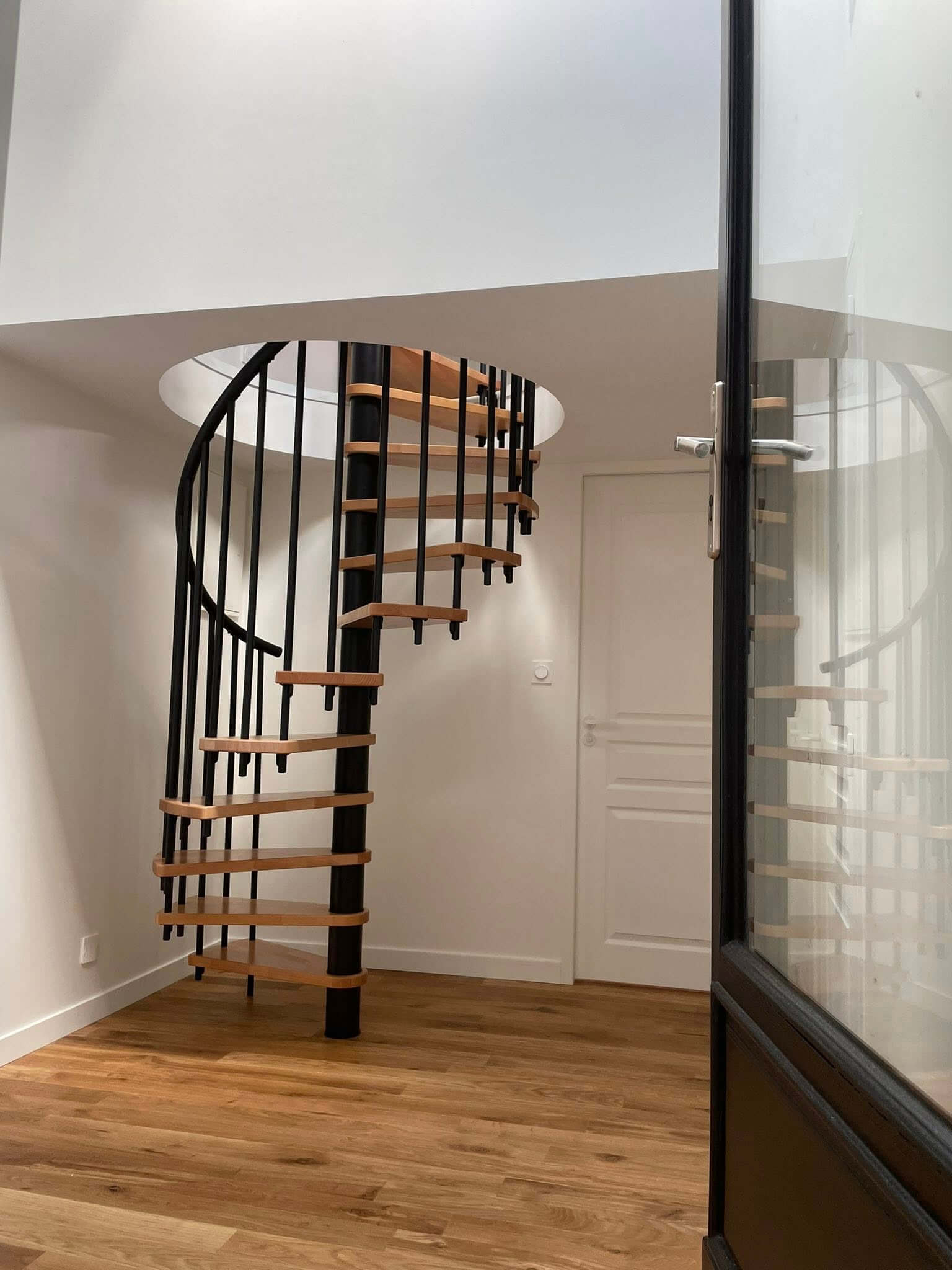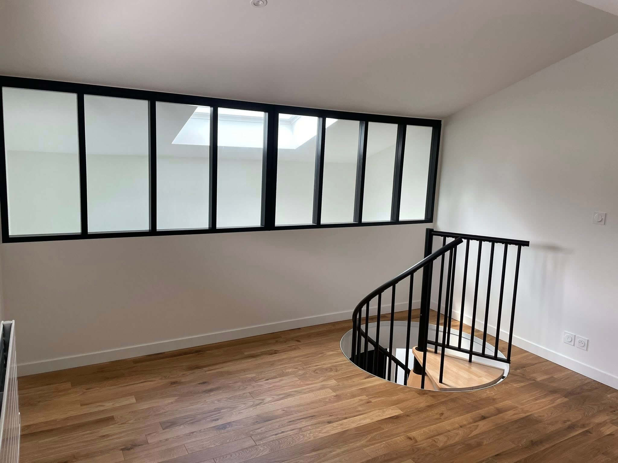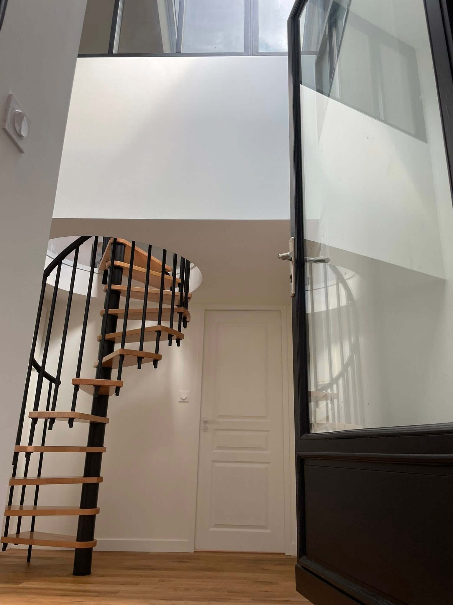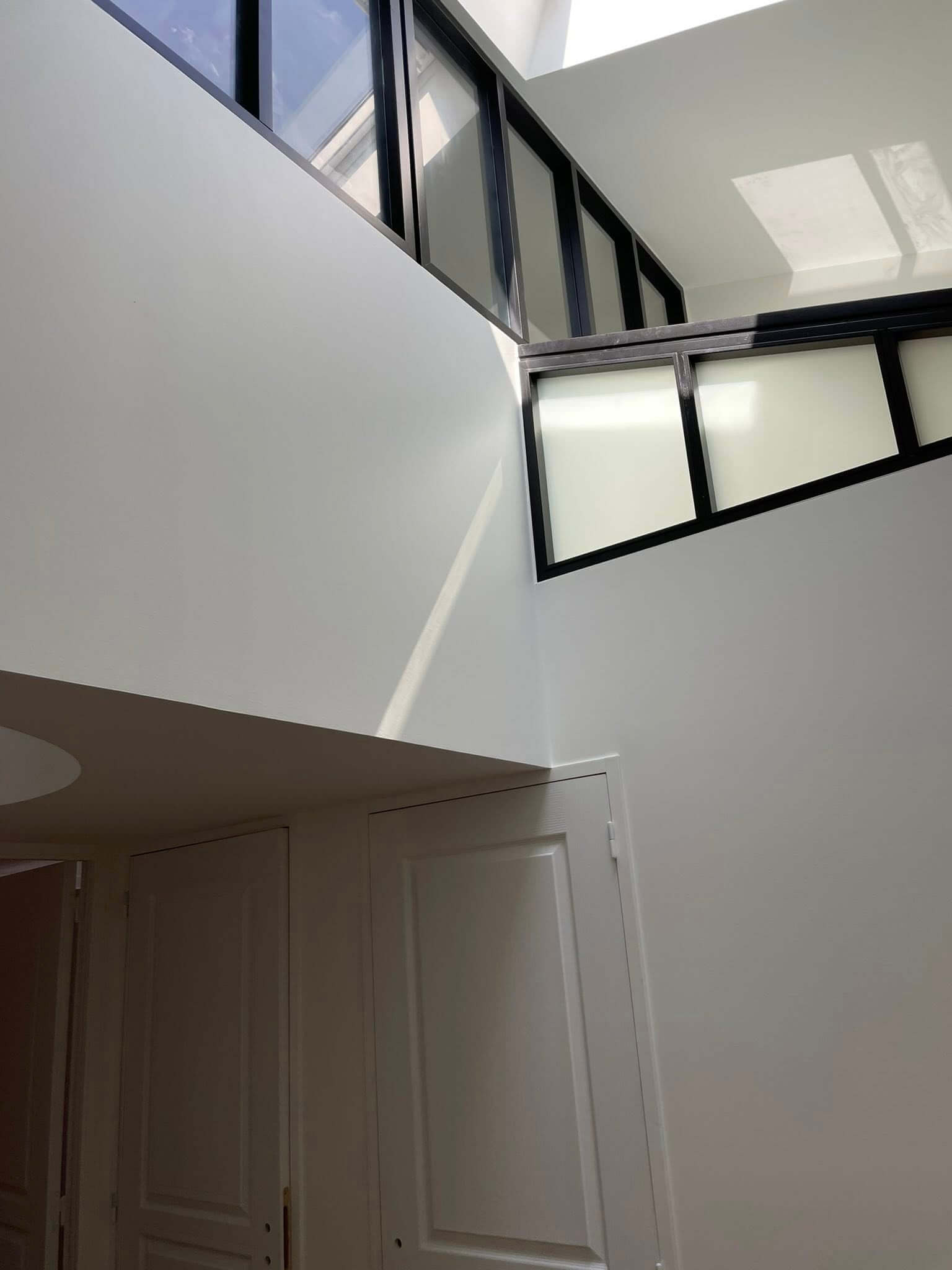 Nous venons de finaliser un chantier d’envergure mêlant rénovation, agencement sur-mesure et travail collaboratif avec des artisans locaux. Ce projet a impliqué la modification du plancher, la pose de placo, l’installation de verrières sur-mesure, la rénovation d’un escalier et l’aménagement d’une salle de bain entièrement repensée.