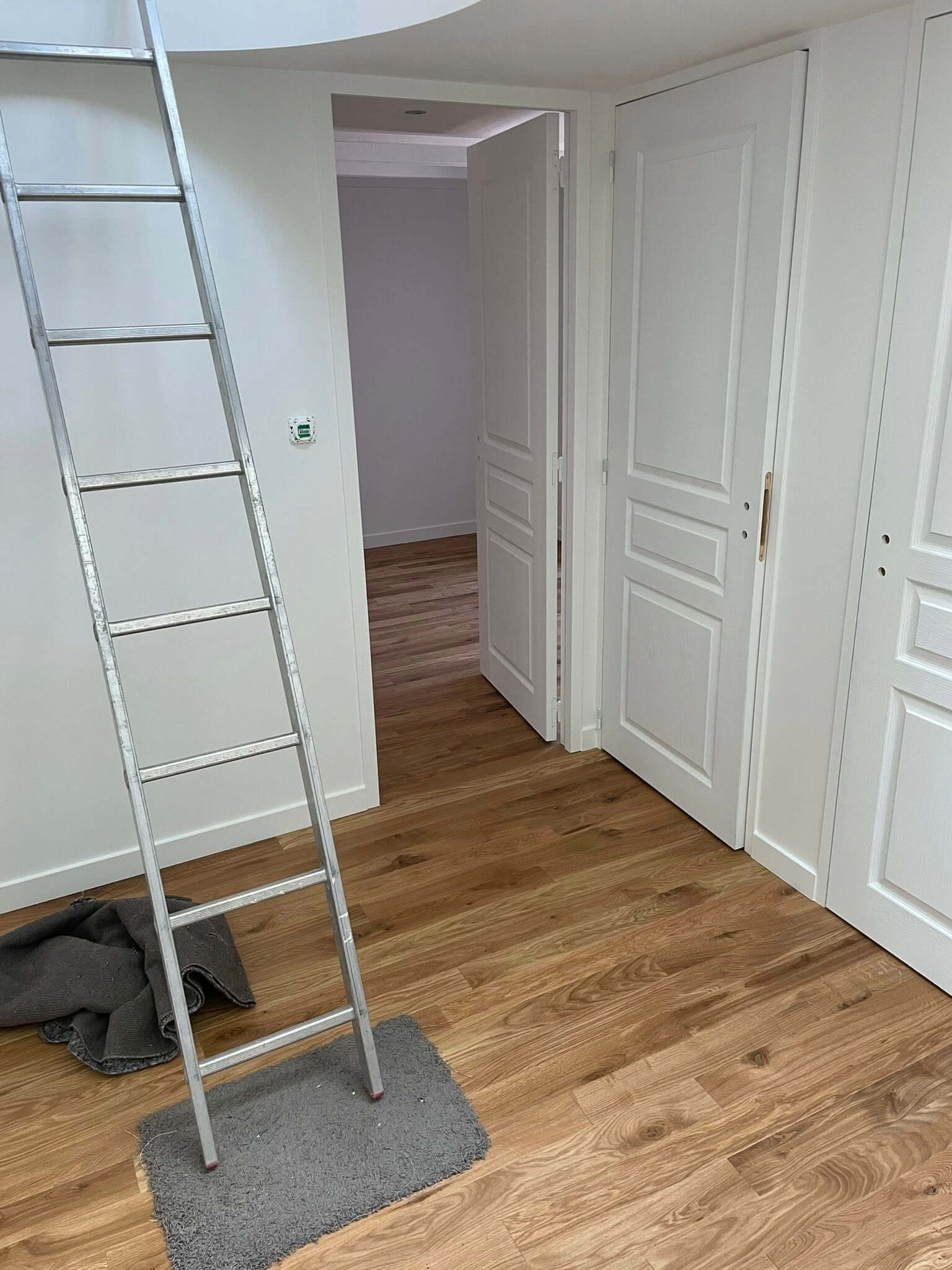 Le chantier a commencé par la modification du plancher, une étape essentielle pour assurer la solidité et l’harmonie des espaces. Nous avons ensuite procédé à la pose de cloisons en placoplâtre (placo) pour redéfinir les volumes et optimiser la circulation dans la maison.