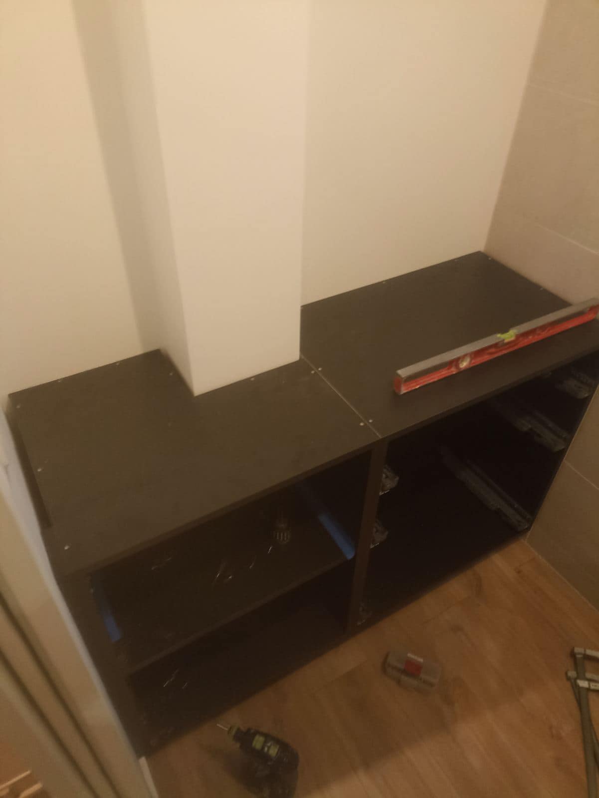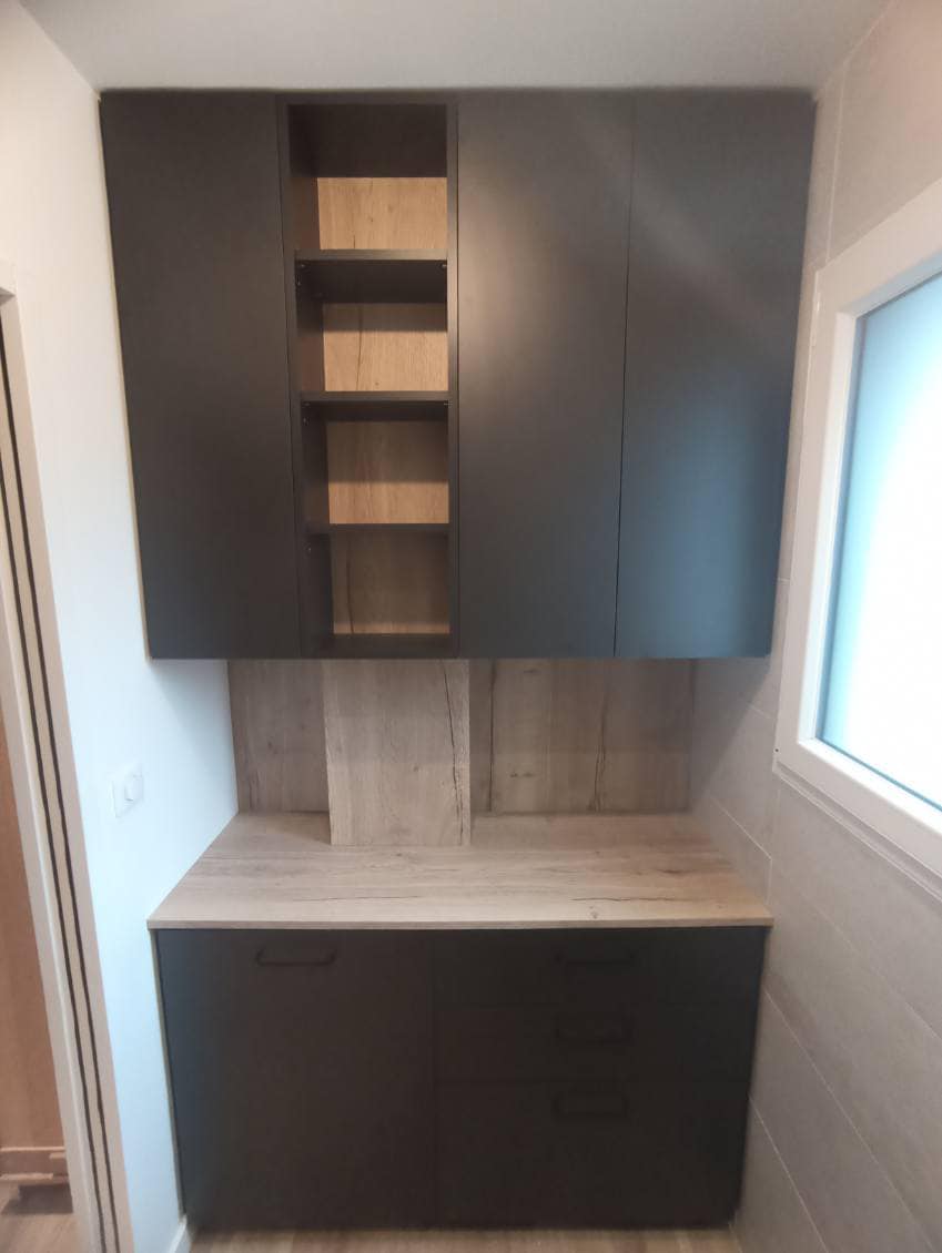 En complément du placard, nous avons fabriqué un meuble de salle de bain sur mesure assorti, garantissant harmonie et cohérence dans l’aménagement intérieur.
