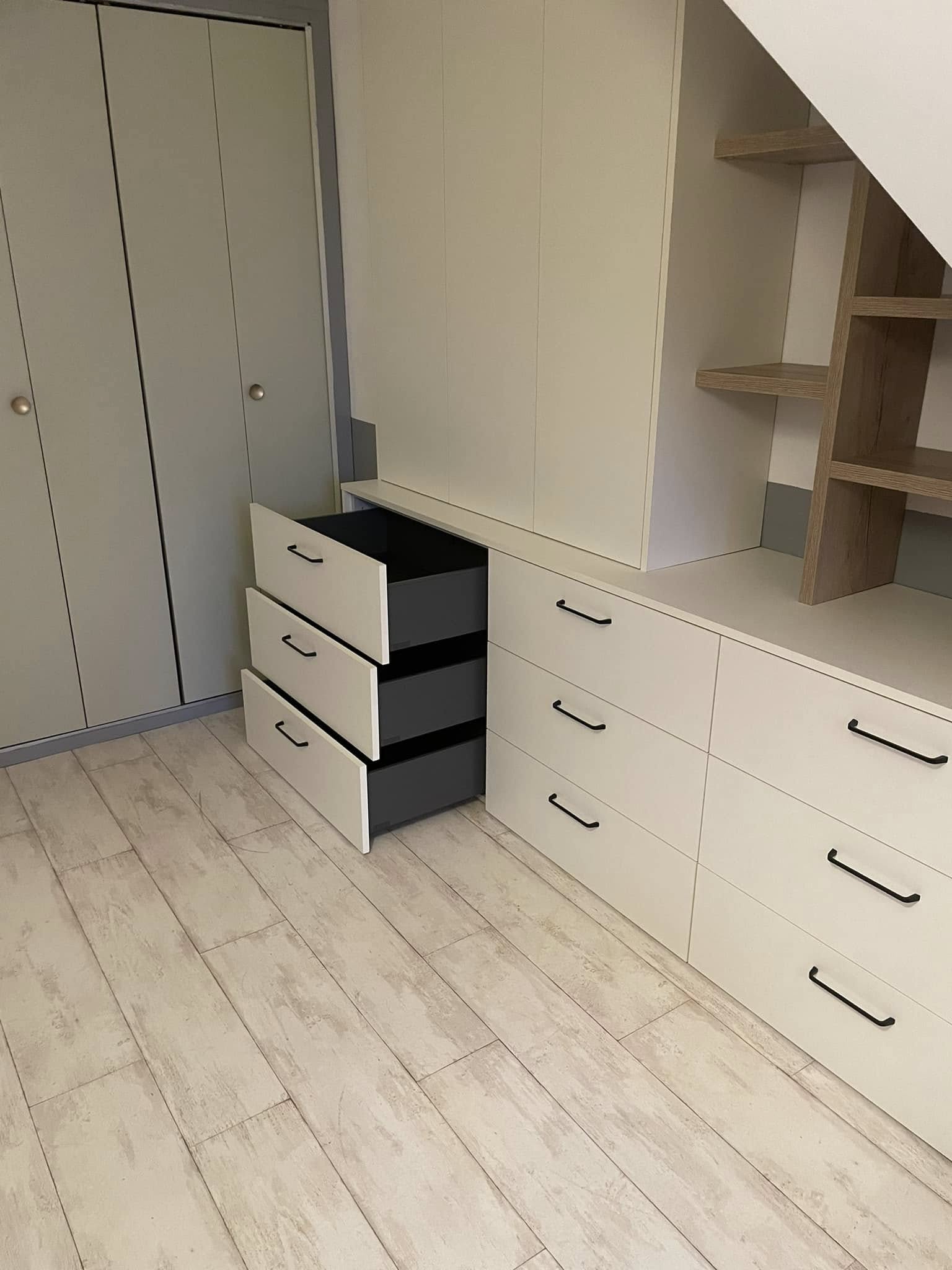 Spécialistes de l’agencement sur mesure en Loire-Atlantique, nous concevons et fabriquons dans notre atelier des solutions adaptées à chaque projet : dressing, placard, cuisine, salle de bain ou rangements spécifiques.